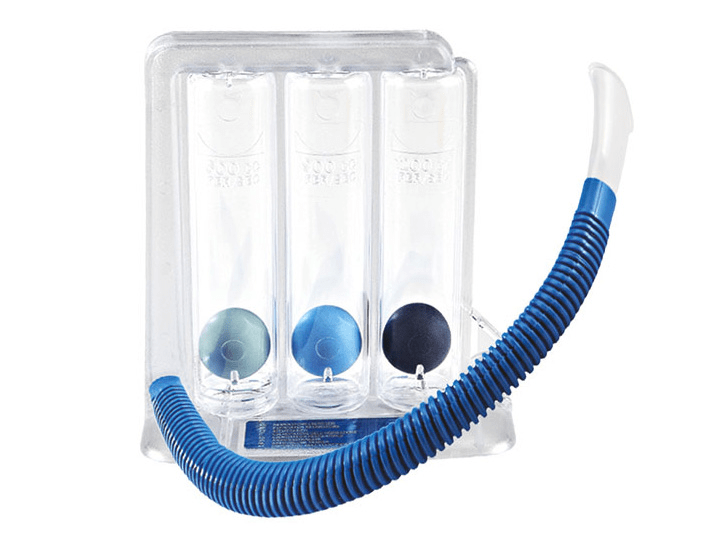 Wer kennt es nicht, wenn man Schmerzen im Oberkörper hat, neigt man dazu, flacher zu atmen, und dann besteht die Gefahr, dass man eine Lungenembolie bekommt, die einen unschönen Ausgang haben kann. Zusätzlich zu diesen täglichen Physiotherapieterminen habe ich einen Atemtrainer bekommen. Mit diesem sollte ich mehrmals pro Stunde üben, die Bälle durch Einatmen oben zu halten. Der Fernseher im Zimmer diente dazu perfekt als Erinnerung, denn immer, wenn es eine Werbeunterbrechung gab, konnte ich trainieren.