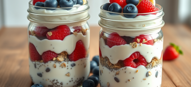 Aufteilen in zwei Gläser und über Nacht im Kühlschrank ziehen lassen.