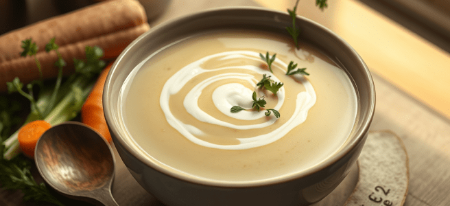 - Zum Schluss noch die Crème Fraîche unterziehen und die Suppe nach Belieben abschmecken.