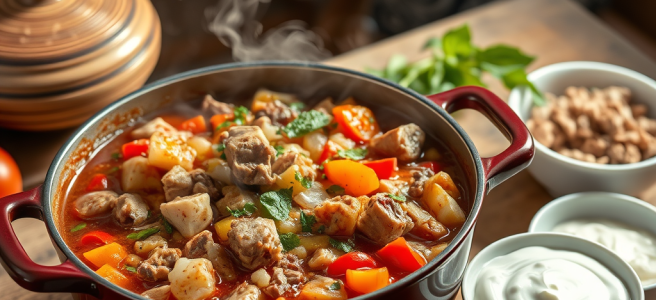 - Anschließend Suppengemüse und Kartoffeln hinzugeben.