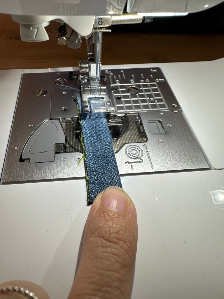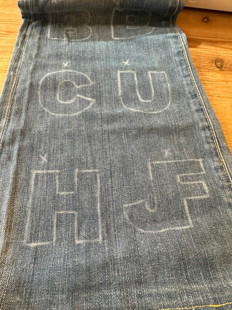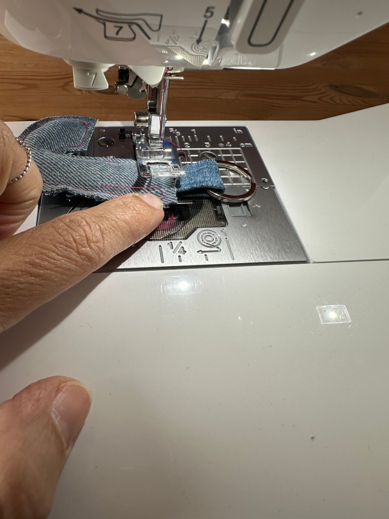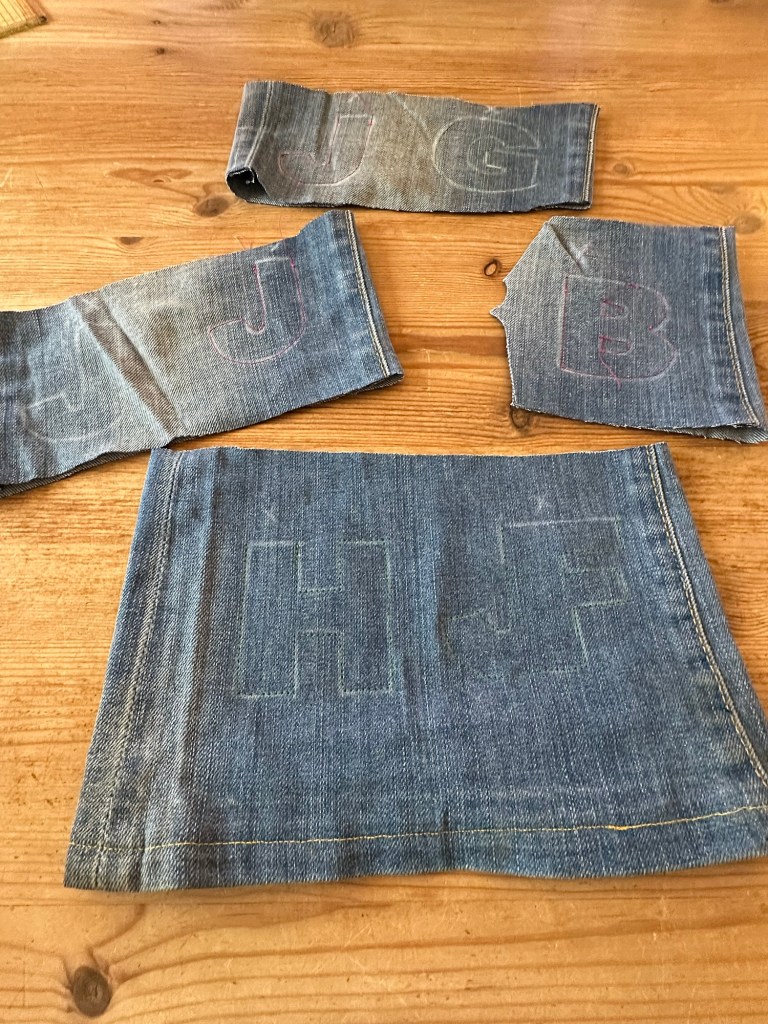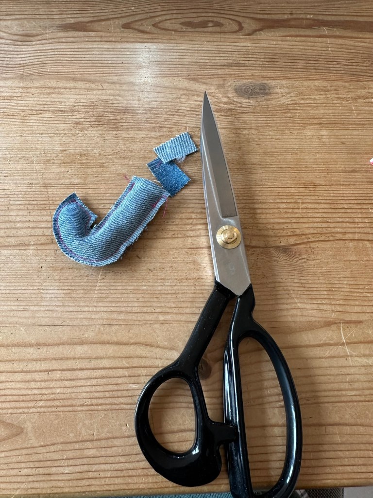 Nun stopfst Du den Buchstaben mit dem Füllmaterial aus, steckst den Anhängerstreifen in die Öffnung und nähst ihn fest.