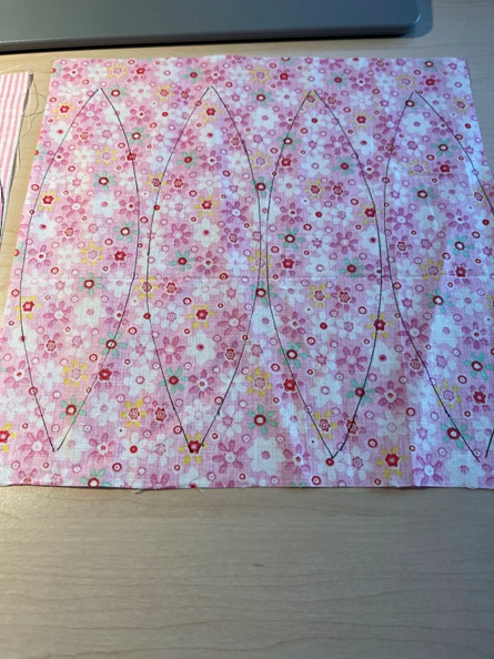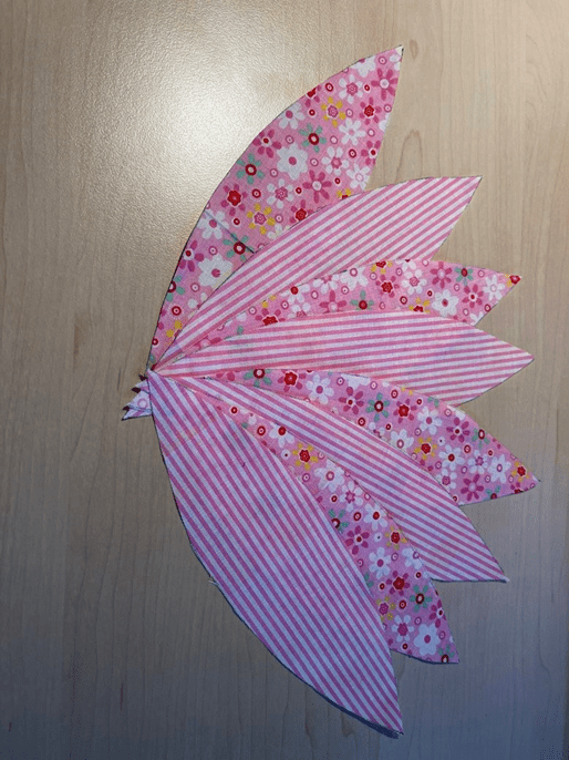 Ihr braucht acht gleichgroße Schnittteile. Schneidet Euch diese aus dem gewünschten Stoff zurecht. Rechnet eine Nahtzugabe von 0,5 bis 1 cm dazu. Bügelt die Stoffstücke schön glatt.