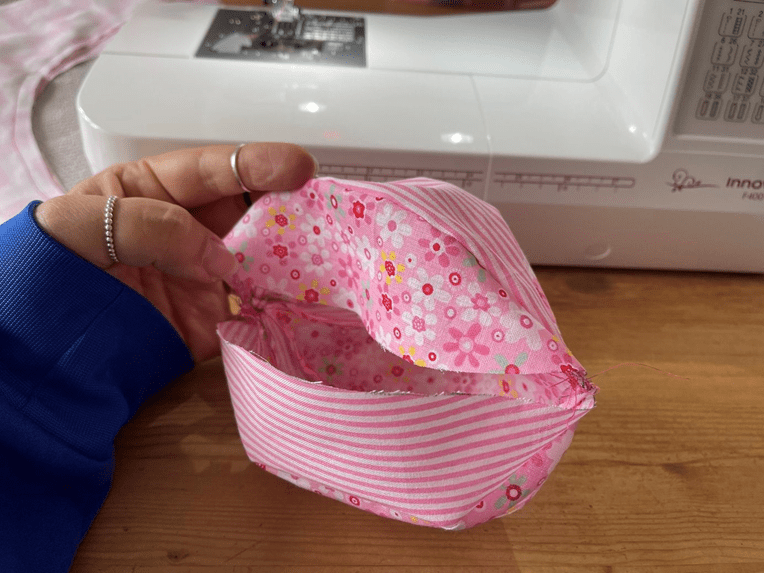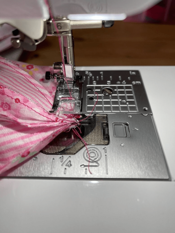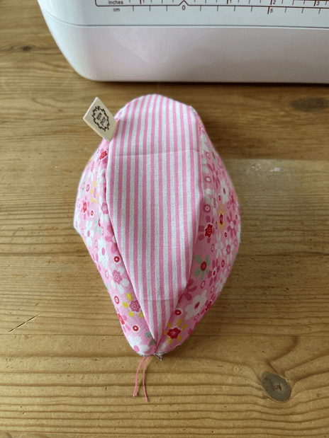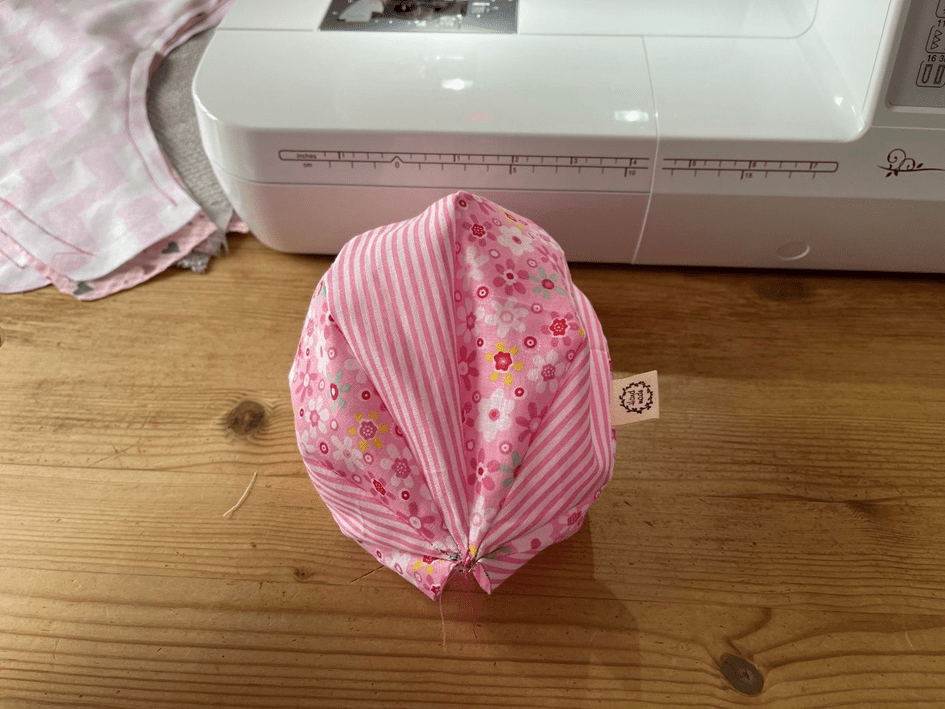 Nun legt ihr den Ball wieder rechts auf rechts und näht noch einmal über die Enden. So stellt ihr sicher, dass sich die Näht dort nicht öffnen. Überschüssiger Stoff (Nahtzugaben) kann abgeschnitten werden.