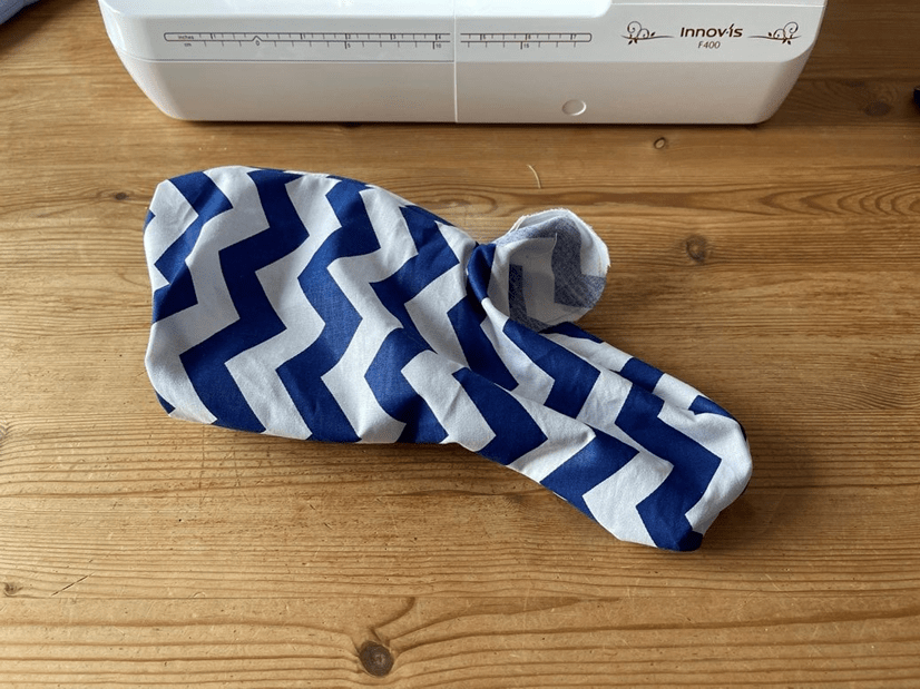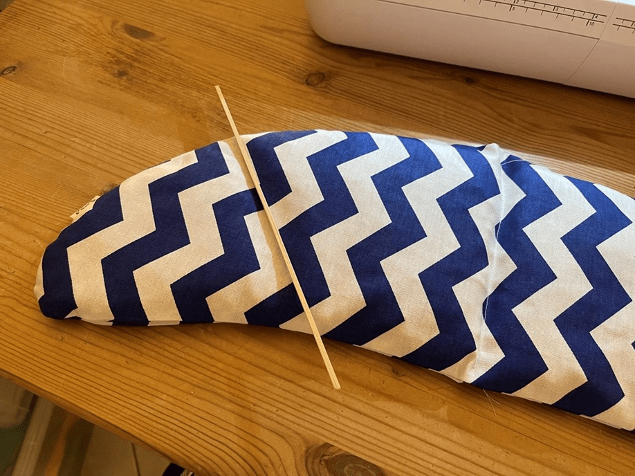 Wenn Ihr das Nackenkissen soweit zusammengenäht habt, dann wendet den Stoff.