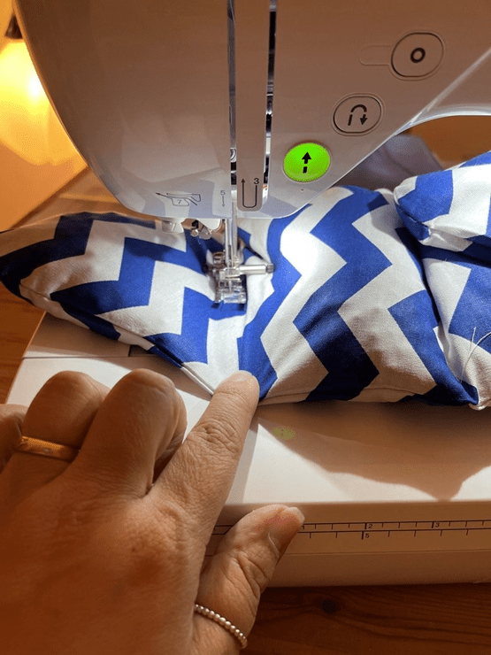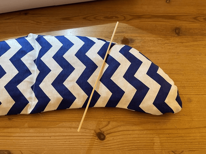 Sobald das Nackenhörnchen gefüllt ist, greift ihr zu Nadel und Faden und näht die Wende-/Befüllöffnung per Hand zu