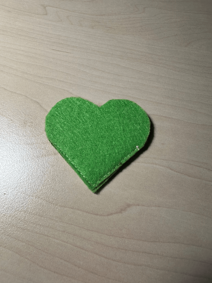 Herzen aufeinanderlegen und unterhalb des Bogens, den Geraden entlang, nähen. Enden jeweils gut vernähen. Schon ist das Lesezeichen fertig.