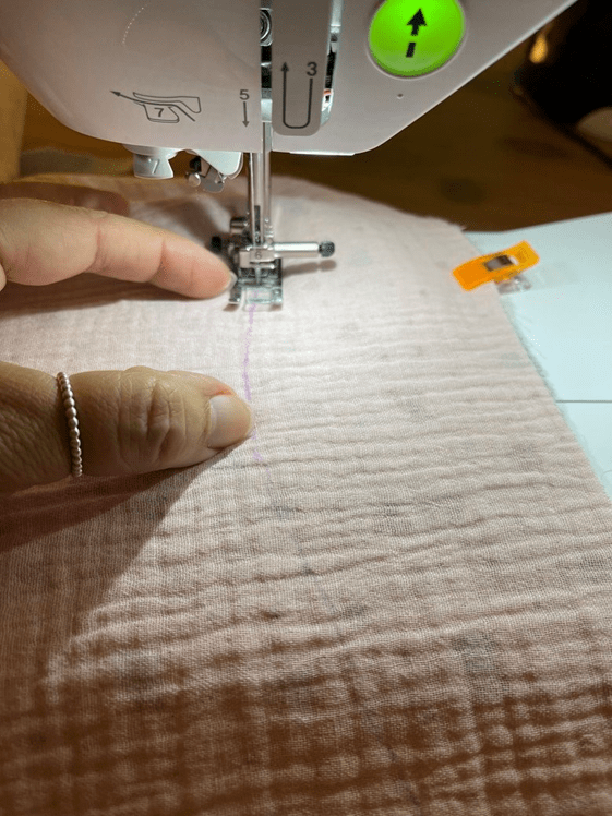 Näht nun ringsherum die beiden Stoffstücke aneinander. Lasst an einer Stelle (ich nehme meist eine der beiden Verschlussenden) eine Wendeöffnung.