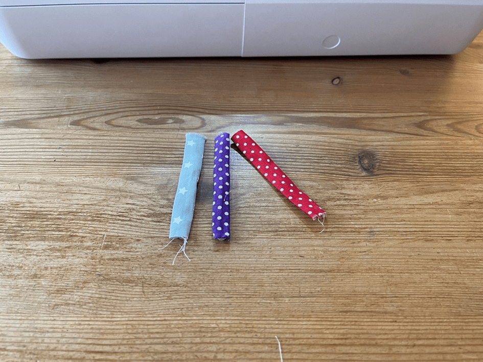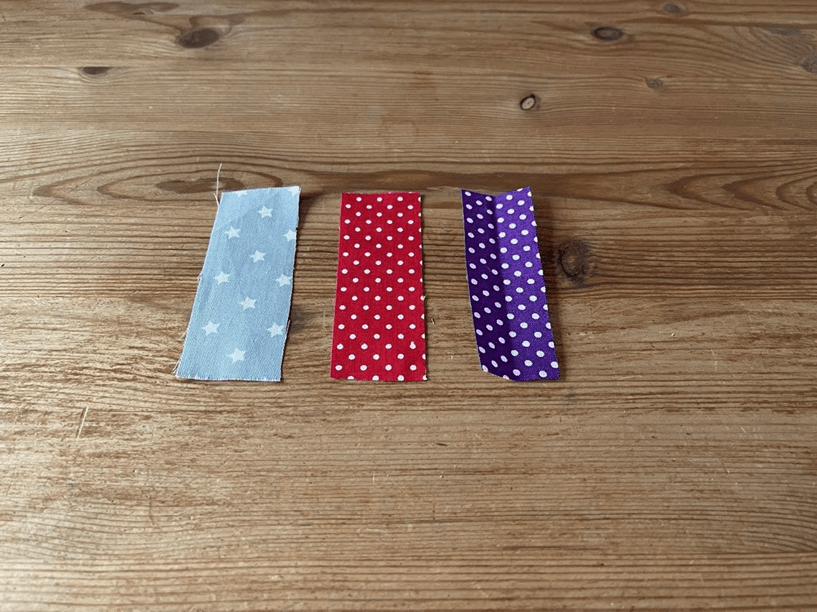 Schneidet zuerst mehrere Stoffstreifen (6x2cm) zurecht.