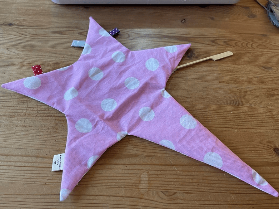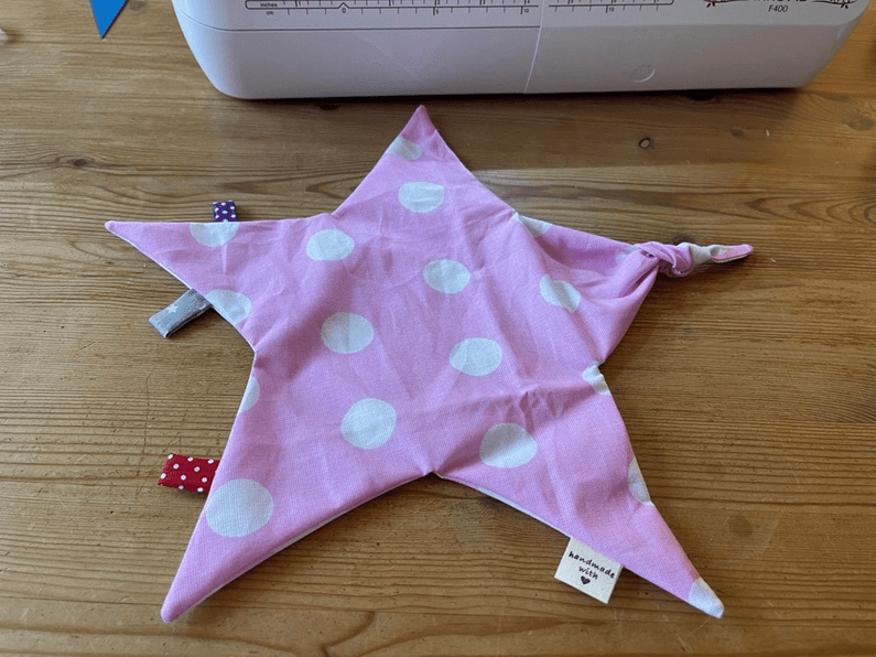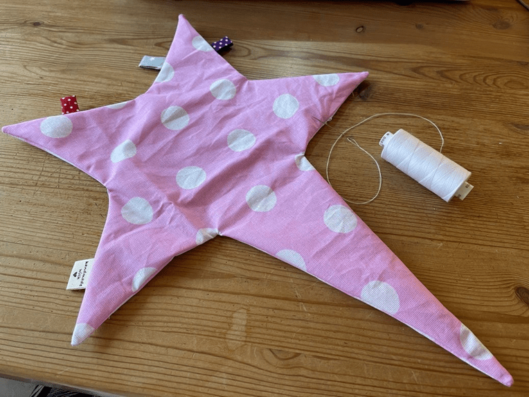Nun greift ihr zu Nadel und Faden und näht die Wendeöffnung per Hand zu und bügelt den Stern schön flach.