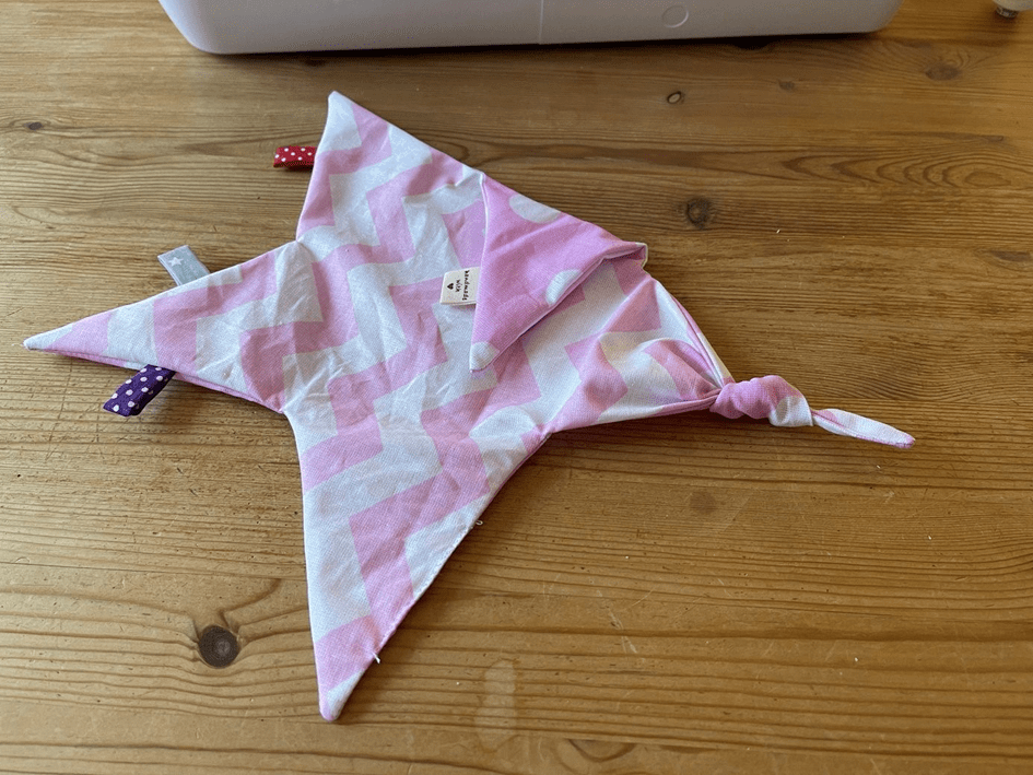 Macht in den langen Zacken einen Knoten und fertig ist das Sternentuch.